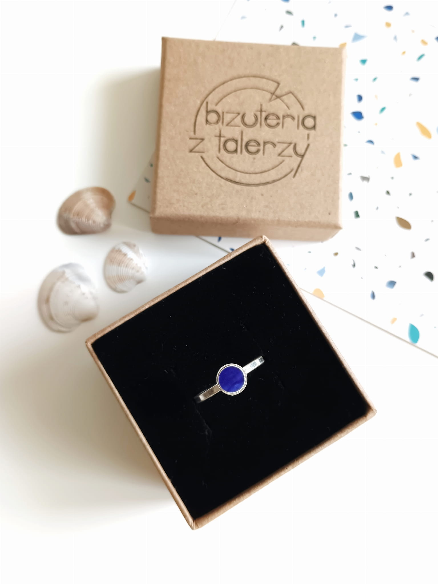 Historia fajansu włocławskiego sięga 1873 roku. Zakładów było kilka, zmieniali się właściciele i lokalizacje. Produkcja najbardziej rozwinęła się po II WŚ, kiedy w miejscowych zakładach powstawał nie tylko fajans, ale również porcelit i porcelana. Zróżnicowane było także wzornictwo - produkowano nie tylko naczynia, ale również elementy wyposażenia wnętrz (lampy, świeczniki, żyrandole). Mimo tej różnorodności, najbardziej rozpoznawalnym wyrobem z Włocławka jest talerz w ręcznie malowane kobaltowe kwiaty (z takich najchętniej korzystam :). I mimo, że najdłużej działająca fabryka zakończyła działalność w 1991 roku, dzięki lokalnym inicjatywom produkcja fajansu została wznowiona i trwa do dziś! Oto pierścionek, który wykonałam z fragmentu fajansu włocławskiego ręcznie malowanego w kobaltowe wzory. Kawałek stłuczki oszlifowałam w okrągły kształt i połączyłam z bazą wykonaną ze srebra próby 925. Rozmiar: 11 (możliwość powiększenia o 1-2 rozmiary). Średnica "oczka" - elementu ceramicznego: 6 mm. Unikat - każdy z moich wyrobów występuje w jednym egzemplarzu. Upcykling - nie reprodukuję wykorzystywanych wzorów, niczego nie domalowuję - wykorzystuję wyłącznie oryginalne naczynia i motywy, które się na nich znajdują. Tym samym, stłuczce z odzysku nadaję nowe życie.